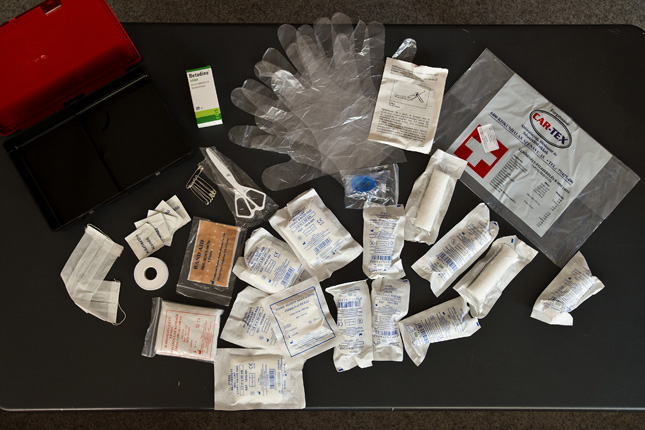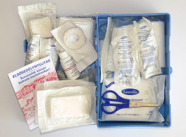 A magyar felszerelés évtizedekkel ezelőtti hagyományokat követ. Rengeteg kötszert, gyorskötöző pólyát és mull-lapot tartalmaz. Ezek többnyire benne vannak az uniósban is, amely új, korszerűbb eszközökkel, hővédő takaróval, érkötő műanyaggal és légzőmaszkkal is segíti a sebesültek mentését. Mindkét dobozból vettünk egyet-egyet, azonban egyik tartalma sem felelt meg saját szabványának. Biztosítótűből és kesztyűből több, egyes kötszerekből kevesebb volt a patikában vásárolt 4800 forintos magyarban, ezek az autósboltokban olcsón, 2600 forintért megkapható uniósból szinte teljesen kimaradtak.