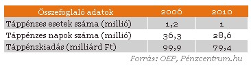 A táppénzre vonatkozó szabályok szigorítása és a folyamatos ellenőrzések révén évek óta csökken a betegséggel keresőképtelen állományban lévők, illetve a táppénzen töltött napok száma. Tíz évvel ezelőtt még átlagosan 26 napot töltöttek keresőképtelen állományban a munkavállalók, 2009-ben viszont már csak 17-et.