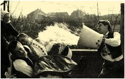 Még ötven évvel ezelőtt is elterjedt volt, hogy az ifjak vödörnyi vízzel öntötték nyakon vagy az itatóvályúba dobták az ünnepi alkalomból legszebb ruhájukba öltözött lányokat. Mára e szokás leginkább már a múlté, a fiúk ma többnyire szagos vízzel, kölnivel köszöntenek.